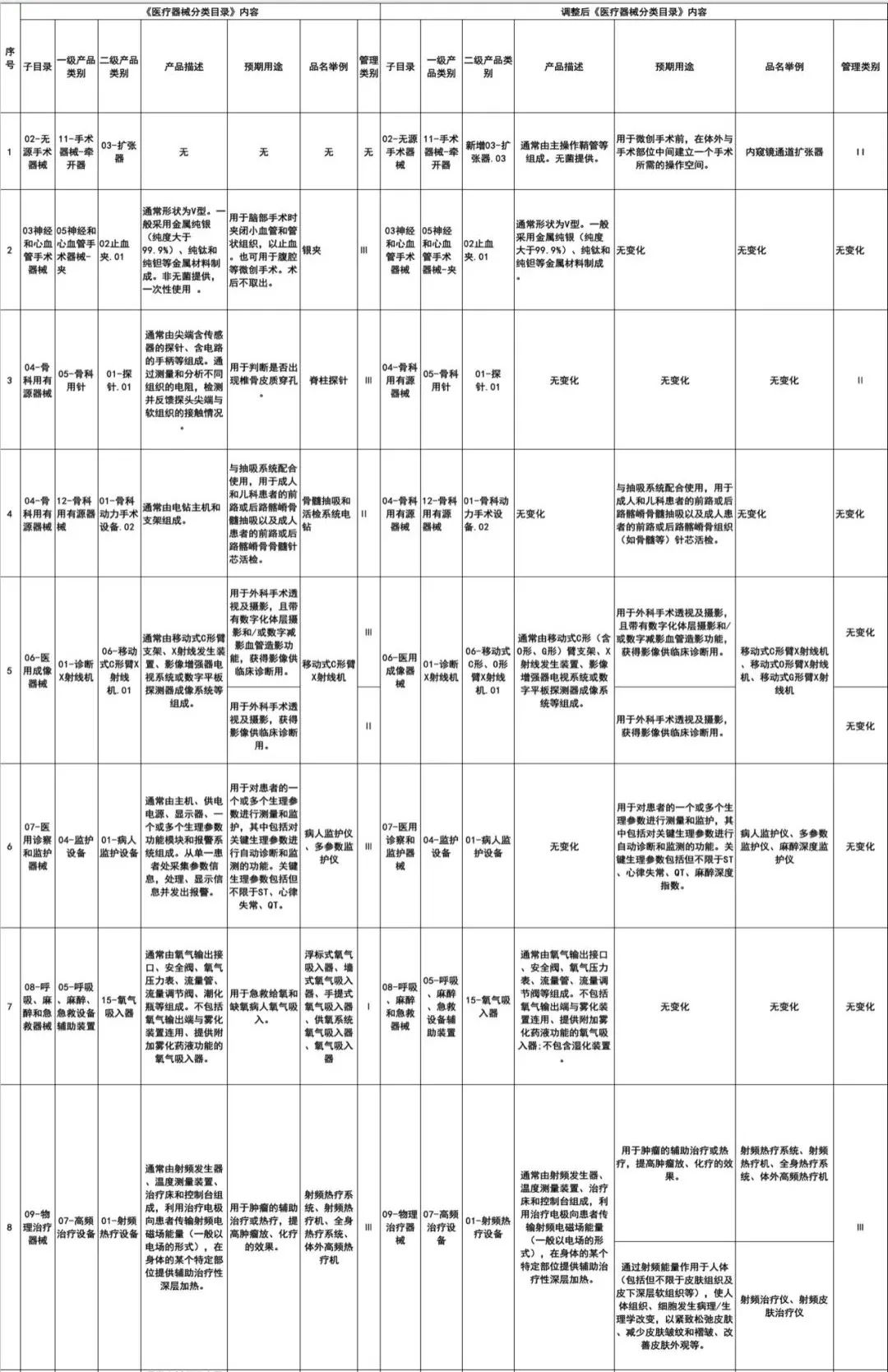《醫(yī)療器械分類目錄》內(nèi)容調(diào)整意見
