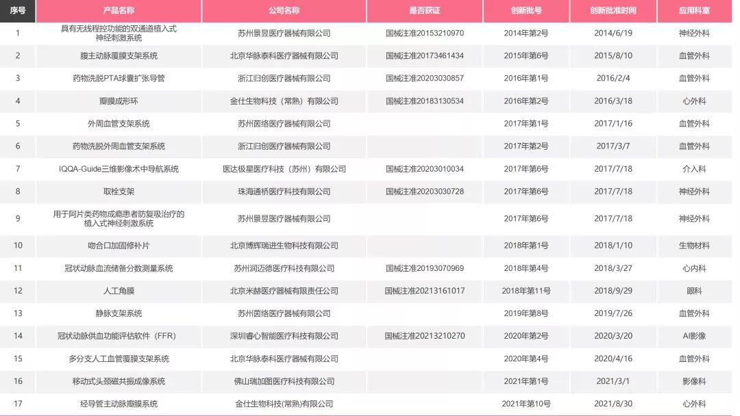 截至2022年2月7日,行業(yè)已有372個醫(yī)療器械產(chǎn)品獲得創(chuàng)新批件,其中145個創(chuàng)新產(chǎn)品獲得注冊證(見附件)。作為創(chuàng)新醫(yī)療器械和高端醫(yī)療器械優(yōu)質(zhì)服務商,奧泰康參與的項目已有17項獲得創(chuàng)新批件,其中9項產(chǎn)品獲得注冊證。