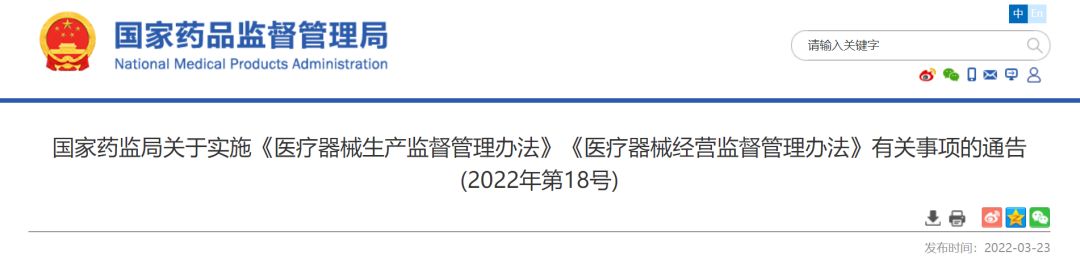 《醫(yī)療器械生產(chǎn)監(jiān)督管理辦法》(國家市場監(jiān)督管理總局令第53號)(以下簡稱《生產(chǎn)辦法》)《醫(yī)療器械經(jīng)營監(jiān)督管理辦法》(國家市場監(jiān)督管理總局令第54號)(以下簡稱《經(jīng)營辦法》)已經(jīng)發(fā)布,自2022年5月1日起施行?,F(xiàn)將有關(guān)事項通告如下:
