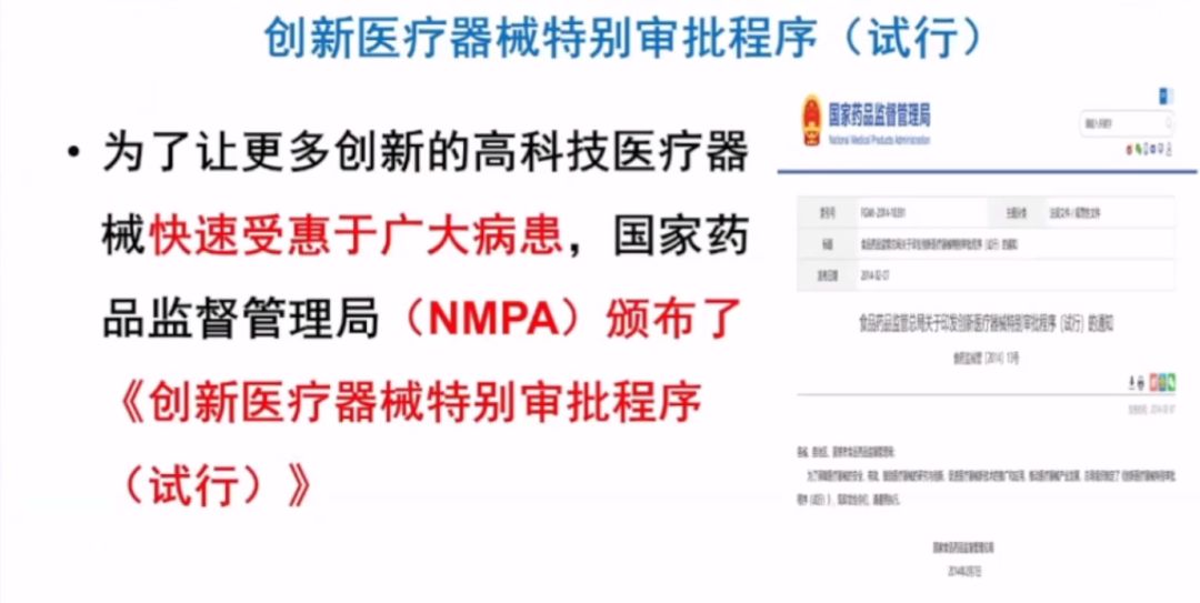2014年2月7日,為保障醫(yī)療器械的安全有效,鼓勵(lì)醫(yī)療器械的研究與創(chuàng)新,促進(jìn)醫(yī)療器械新技術(shù)的推廣應(yīng)用,推動(dòng)醫(yī)療器械產(chǎn)業(yè)發(fā)展,國家藥監(jiān)局制定了《創(chuàng)新醫(yī)療器械特別審批程序(試行)》,政策從創(chuàng)新產(chǎn)品定義、提交資料、證明性文件、等方面規(guī)定了創(chuàng)新器械審批流程和要點(diǎn)。