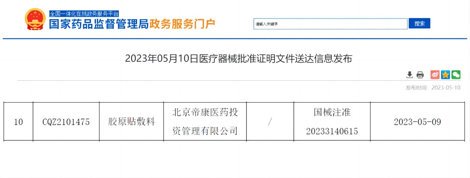 MA成果發(fā)布_2023年5月9日,奧泰康北京CDMO中心取得「首張」國家藥監(jiān)局批準(zhǔn)的三類醫(yī)療器械注冊證2023年5月9日,奧泰康北京CDMO中心取得「首張」國家藥監(jiān)局批準(zhǔn)的三類醫(yī)療器械注冊證(國械注準(zhǔn)20233140615),系全國首個以細(xì)胞外基質(zhì)來源的膠原蛋白為原料制備的三類膠原貼敷料。此項目是北京CDMO中心基于“十三五”國家重點研發(fā)計劃項目,在MAH制度下,與湖北恒安芙林藥業(yè)股份有限公司戰(zhàn)略合作完成涵蓋市場準(zhǔn)入全流程業(yè)務(wù)的醫(yī)美類項目,也是器械CRO/CDMO行業(yè)受托研發(fā)誕生的全國首個三類醫(yī)療器械注冊證,具有里程碑意義。