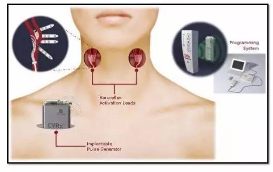 壓力感受器是位于頸動(dòng)脈竇和主動(dòng)脈弓中的解剖結(jié)構(gòu),壓力感受激活療法 是一種治療心力衰竭的創(chuàng)新性電療法,裝置由植入式脈沖發(fā)生器和頸動(dòng)脈竇電極組成,通過(guò)電刺激頸動(dòng)脈壁的壓力感受器來(lái)調(diào)節(jié)自主神經(jīng)系統(tǒng),可以同時(shí)增加迷走神經(jīng)活性并降低交感神經(jīng)活性,從而改善心力衰竭患者心功能和臨床預(yù)后。