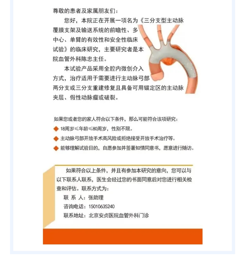 近期,由北京天助瑞暢醫(yī)療自主研發(fā)且具有完全自主知識產(chǎn)權(quán)的三分支型主動脈覆膜支架及輸送系統(tǒng)FIM臨床試驗,由首都醫(yī)科大學附屬北京安貞醫(yī)院成功完成全球首例受試者入組,奧泰康負責臨床試驗服務(wù)。