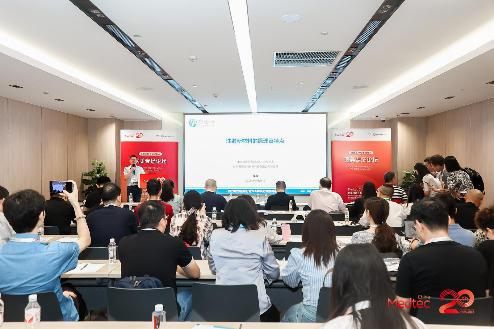 9月27日,上海世博展覽館,Medtec China 2024暨第十八屆國際醫(yī)療器械設(shè)計(jì)與制造技術(shù)展覽會(huì)落下帷幕,這一盛會(huì)匯集了來自全球各地的頂尖企業(yè)、科研機(jī)構(gòu)及行業(yè)專家。奧泰康作為參展商受邀參加會(huì)議,在醫(yī)美專場論壇中,奧泰康蘇州CDMO中心負(fù)責(zé)人、蘇州蘇豪生物材料科技有限公司總經(jīng)理李強(qiáng)以《注射新材料的原理及特點(diǎn)》為主題進(jìn)行分享,與行業(yè)伙伴共同探索醫(yī)療器械領(lǐng)域的最新趨勢與未來發(fā)展方向。