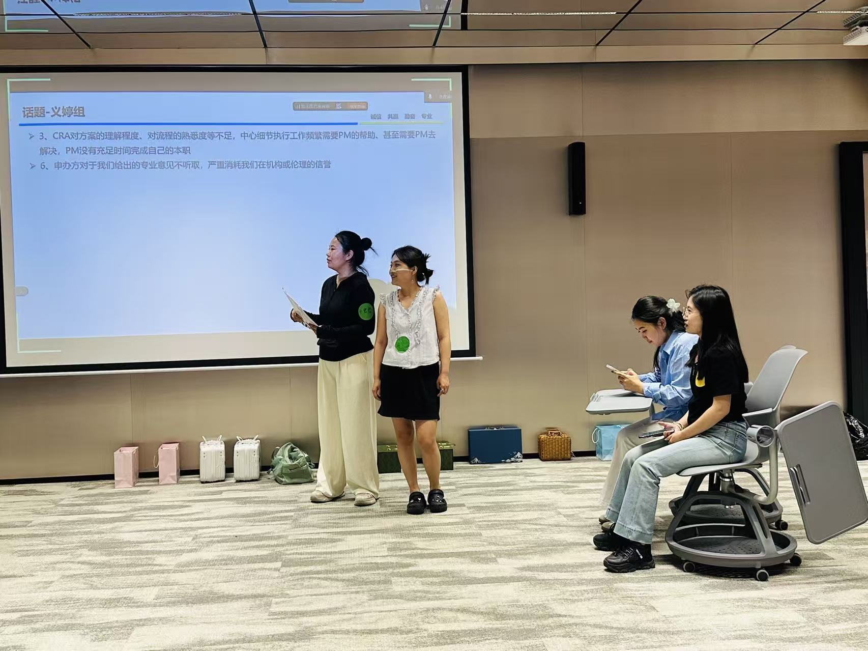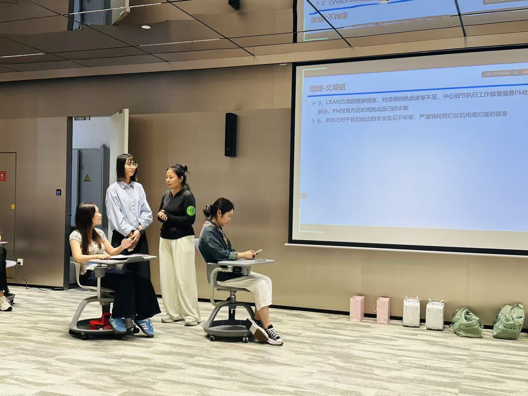 有效的溝通是團(tuán)隊協(xié)作的基石。本次培訓(xùn)引入了“非暴力溝通”理念,通過情景模擬與案例分析,幫助學(xué)員掌握傾聽、表達(dá)與反饋的技巧,減少人際沖突,提升團(tuán)隊凝聚力。通過不同情節(jié)的生動演繹,團(tuán)隊成員詮釋出日常工作中的各種棘手問矛盾,許多學(xué)員表示,這一環(huán)節(jié)讓他們重新審視了溝通方式,學(xué)會了如何以更平和、高效的方式解決工作中的矛盾。這不僅是一種技巧,更是一種修行,它能幫助我們化解與研究者、受試者或團(tuán)隊成員間的潛在沖突,營造和諧、高效的工作氛圍。