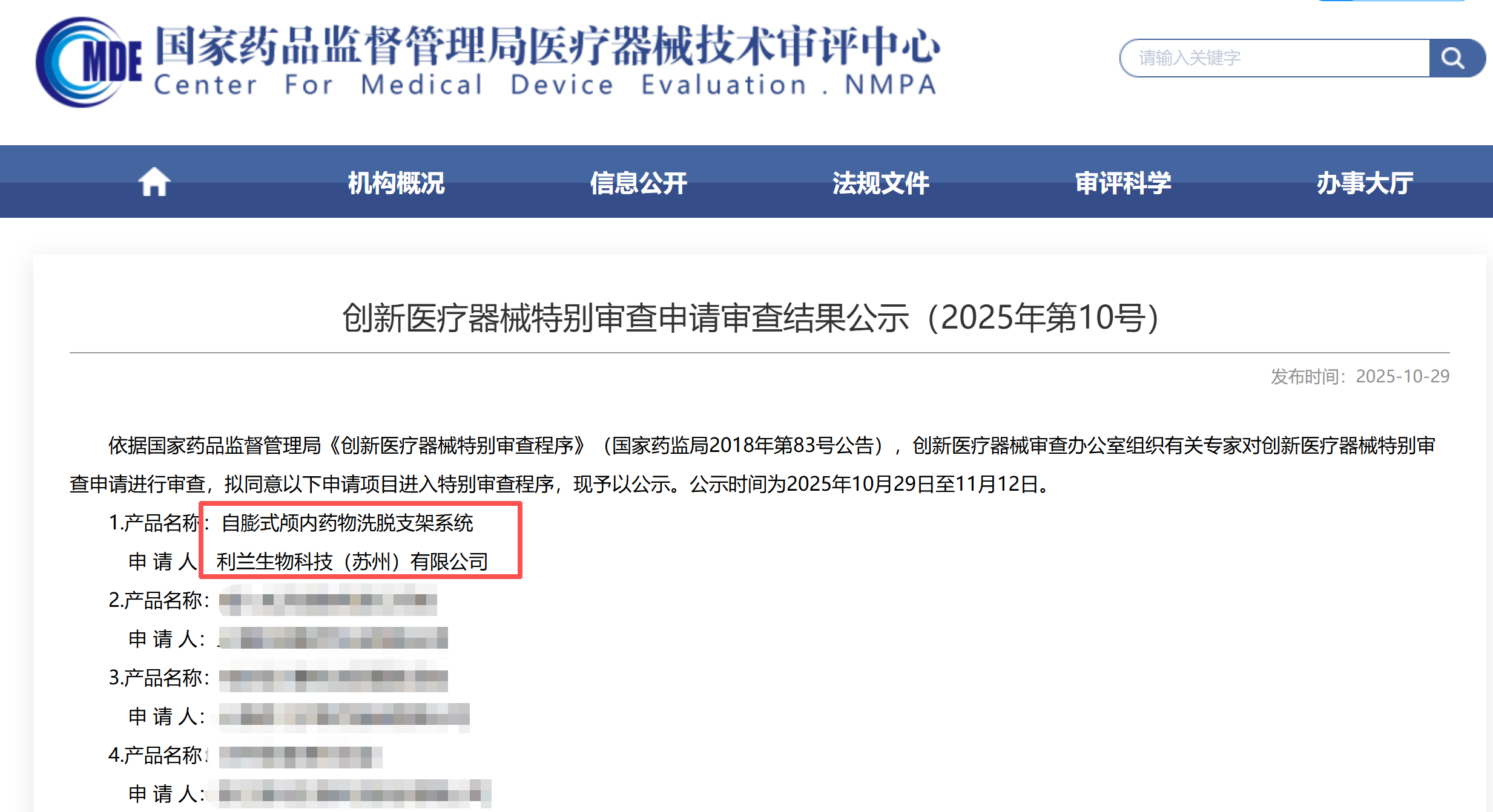 近日,利蘭生物科技(蘇州)有限公司自主研發(fā)的產(chǎn)品【自膨式顱內(nèi)藥物洗脫支架系統(tǒng)】正式進(jìn)入國(guó)家創(chuàng)新醫(yī)療器械特別審批程序(綠色通道),奧泰康提供創(chuàng)新申報(bào)服務(wù)。