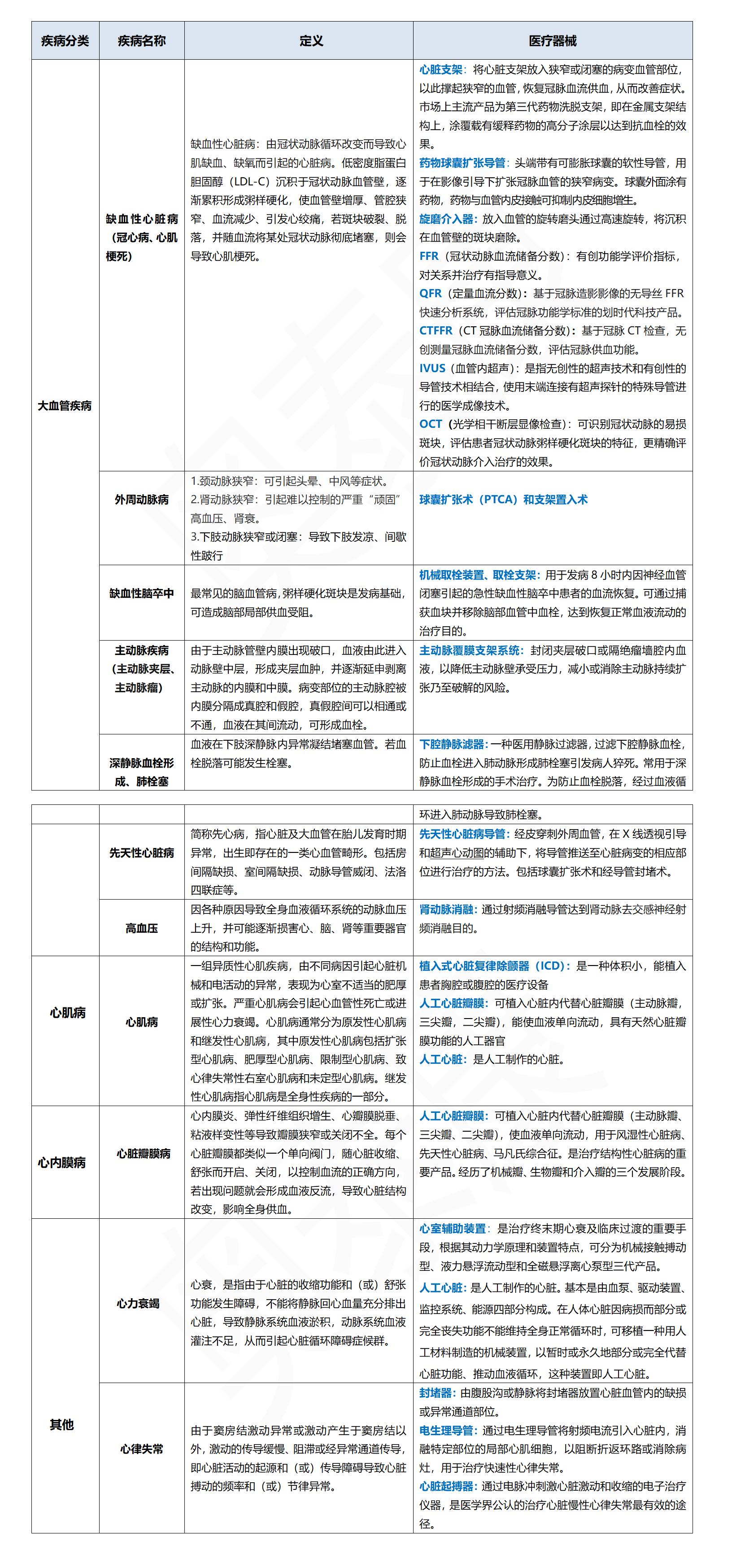 心血管疾病類別及對(duì)應(yīng)用醫(yī)療器械