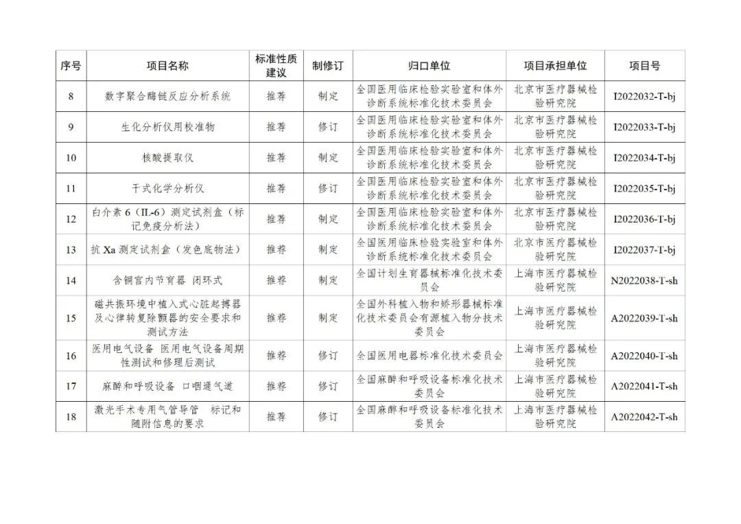 為貫徹國(guó)務(wù)院辦公廳《關(guān)于全面加強(qiáng)藥品監(jiān)管能力建設(shè)的實(shí)施意見(jiàn)》,落實(shí)《“十四五”國(guó)家藥品安全及促進(jìn)高質(zhì)量發(fā)展規(guī)劃》有關(guān)要求,按照國(guó)家藥監(jiān)局醫(yī)療器械行業(yè)標(biāo)準(zhǔn)制修訂工作部署,現(xiàn)將2022年醫(yī)療器械行業(yè)標(biāo)準(zhǔn)制修訂計(jì)劃項(xiàng)目印發(fā)給你們,有關(guān)要求通知如下: