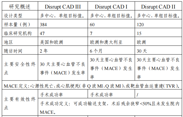*Disrupt CAD I 為上市前臨床試驗