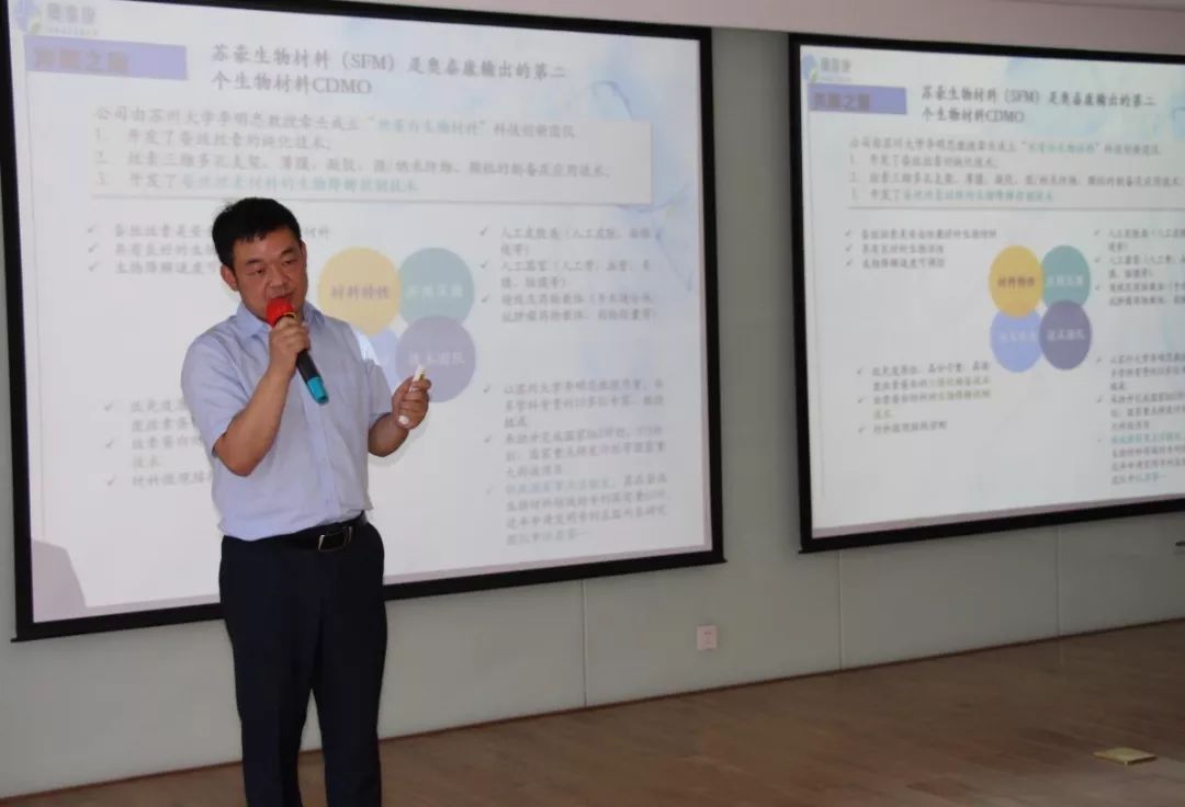培訓(xùn)會在下午1:30準(zhǔn)時開始,集團(tuán)CEO饒總對公司整體發(fā)展做詳細(xì)講解,饒總分別從“企業(yè)發(fā)展歷程”、“管理團(tuán)隊介紹”、“我們的未來發(fā)展”三大方面進(jìn)行介紹,培訓(xùn)中,饒總憶苦思甜,深情講述奧泰康發(fā)展初期的鳳凰涅槃,在場員工無一不為之動容,為公司初期艱苦奮斗,堅守信念的精神所感動;之后奧泰康進(jìn)入快速發(fā)展階段,先后獲得多項創(chuàng)新醫(yī)療器械批件,并參與多項國家重點研究項目,并與多家國內(nèi)外知名企業(yè)合作,擁有醫(yī)療器械CDMO行業(yè)唯一的已投產(chǎn)GMP車間等等,從最初單項的CRO項目服務(wù)延伸到CRO/CDMO一體化服務(wù),致力于成為醫(yī)藥行業(yè)MA解決方案的領(lǐng)導(dǎo)者;