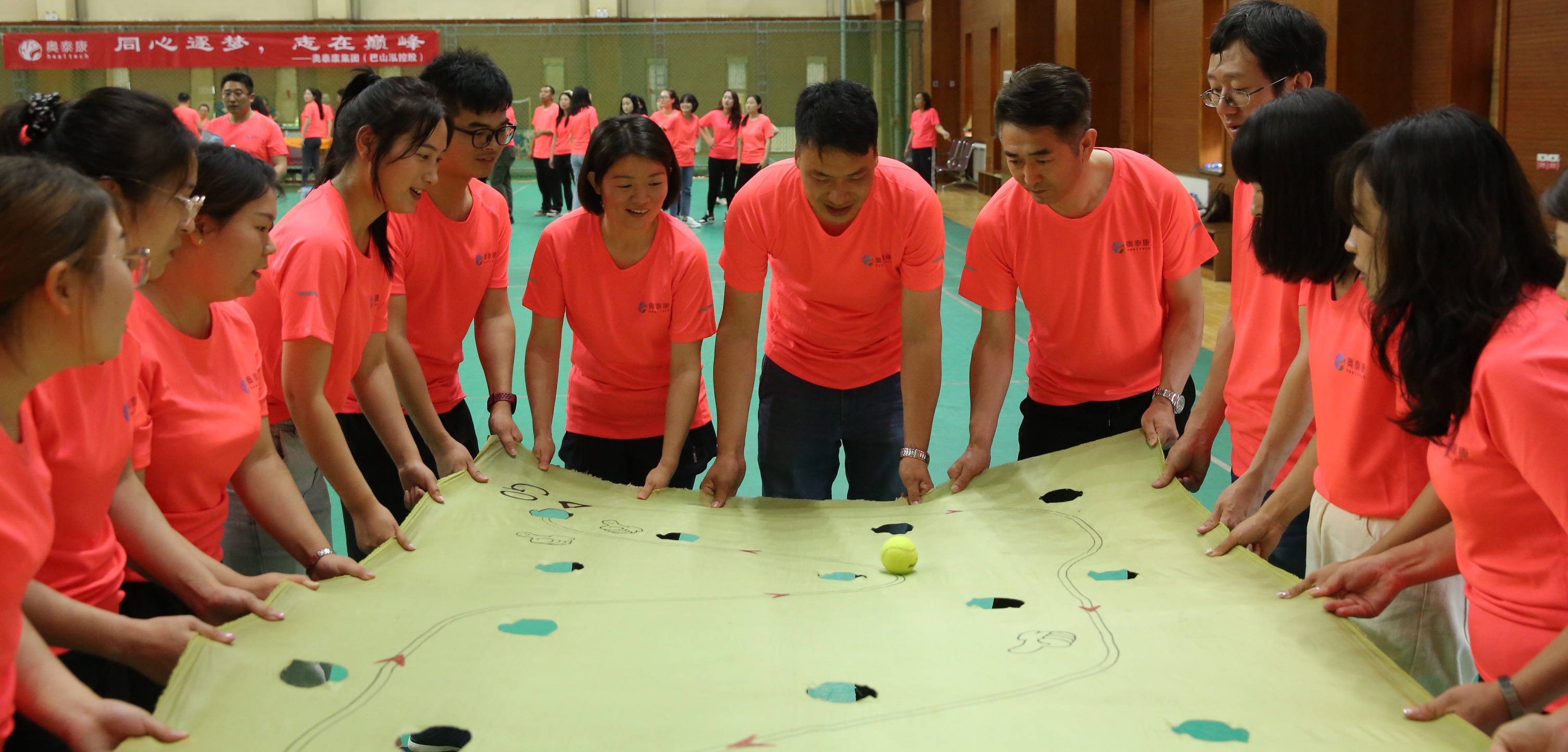 各隊(duì)發(fā)揮團(tuán)體創(chuàng)造力和集體智慧,完成了以【公司logo+活動(dòng)主題“同心逐夢(mèng)、志在巔峰”和公司的使命愿景及企業(yè)精神】為主題的繪畫創(chuàng)作,氣勢(shì)恢宏的巨幅畫作震撼人心,感動(dòng)了在場(chǎng)的每一位奧泰康人。