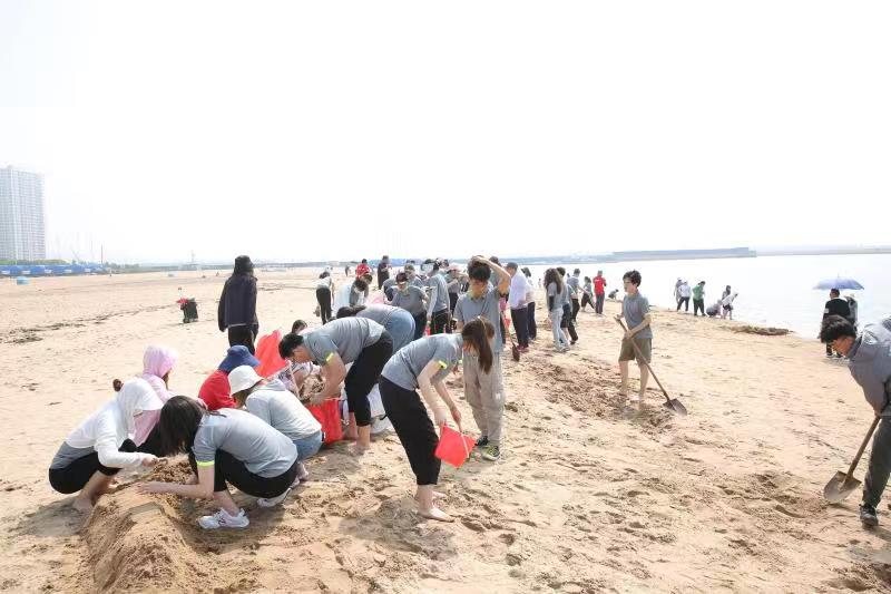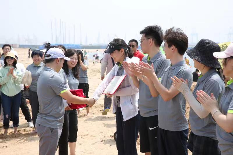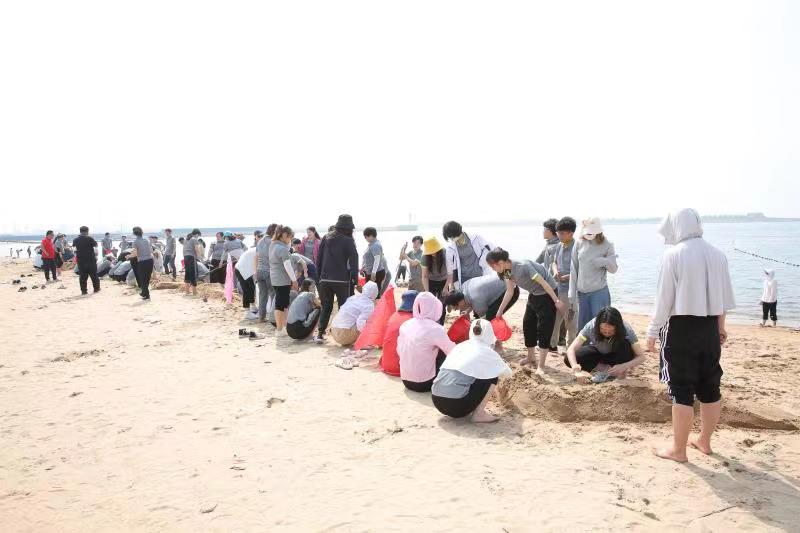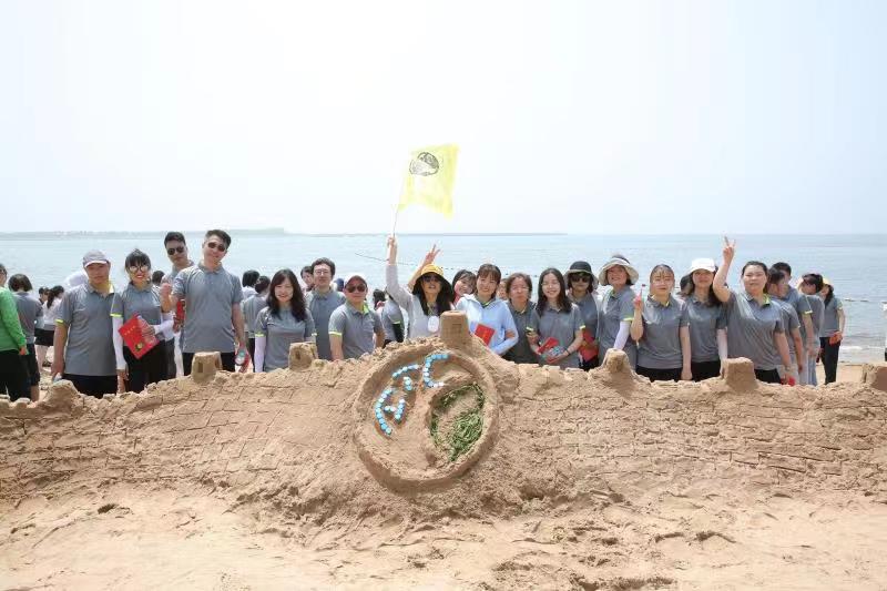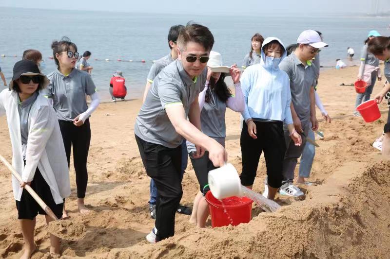 海邊沙灘,全體奧泰康人共同構(gòu)筑了一座長(zhǎng)40余米、高1米的沙雕長(zhǎng)城,每組隊(duì)員分工明確—鏟沙、運(yùn)水、堆砌,聚沙成塔,經(jīng)過兩小時(shí)的共同搭建,眾志成城,一座巍峨壯闊的沙雕長(zhǎng)城矗立在沙灘上。